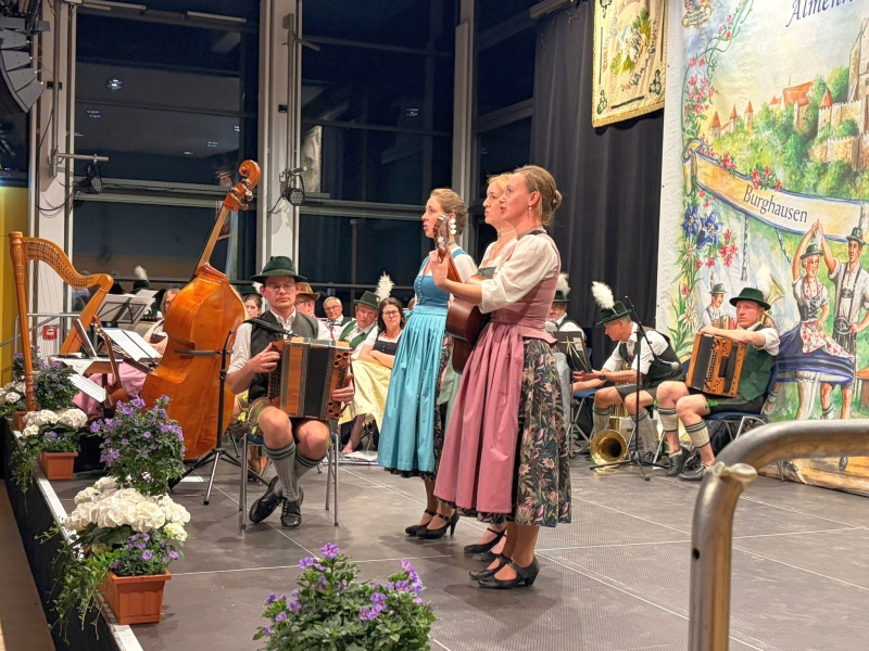 Am Samstag, den 25. April 2026, lud der Trachtenverein zum traditionellen Heimatabend ins Burghauser Bürgerhaus ein. Auch wenn der Saal nicht restlos gefüllt war,  tat dies der Stimmung keinen Abbruch. Die Besucherinnen und Besucher erlebten einen abwechslungsreichen, kurzweiligen Abend ganz im Zeichen von Brauchtum und bayerischer Musik. Besonders erfreulich war der Besuch des Patenvereins aus Leonberg, der mit seiner Anwesenheit die enge Verbundenheit der beiden Vereine unterstrich.