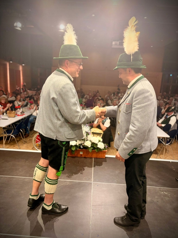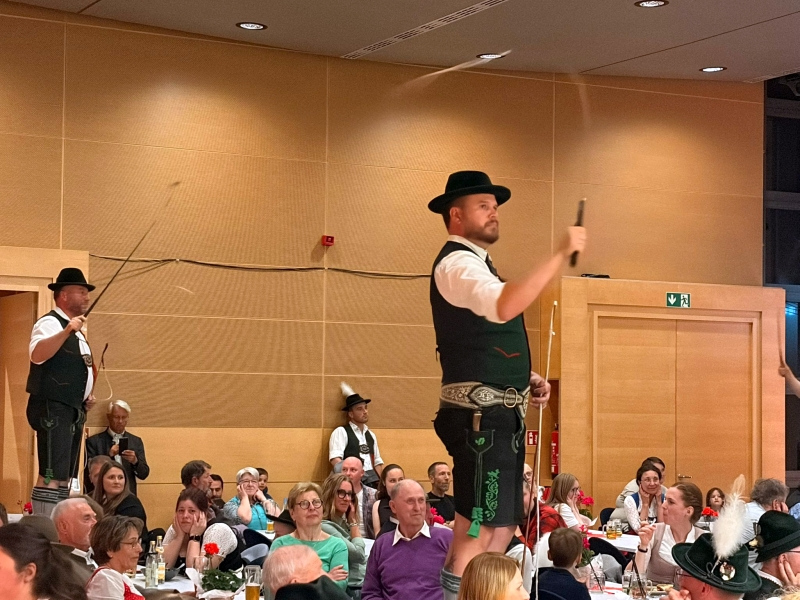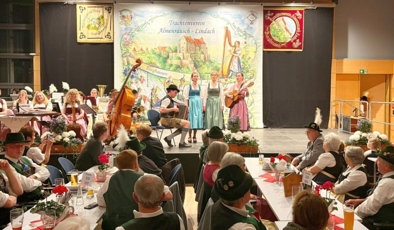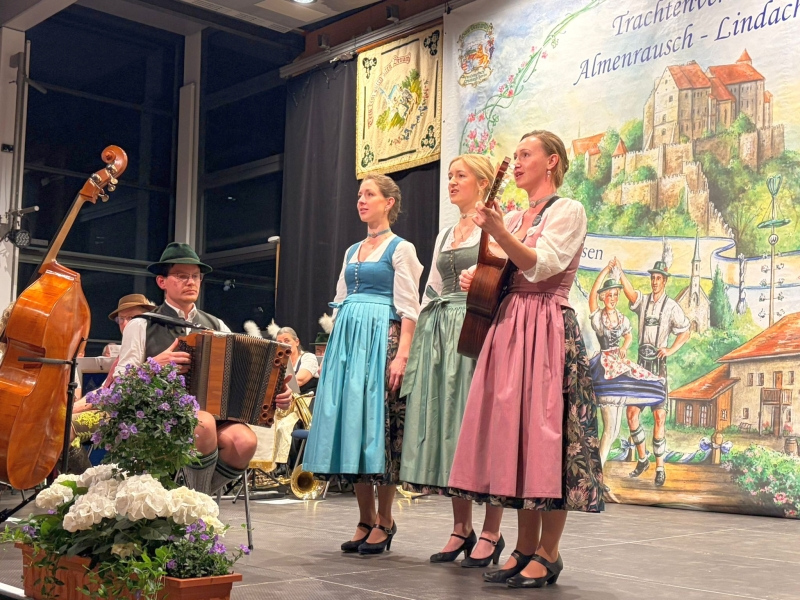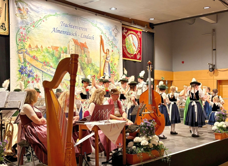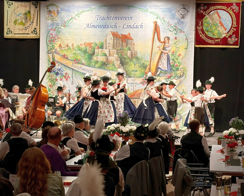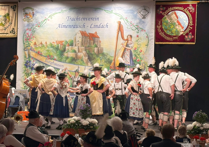 Nach der Pause setzte sich das Programm in gleichermaßen abwechslungsreicher und hochklassiger Weise fort. Besondere Höhepunkte bildeten der eindrucksvoll getanzte Sterntanz sowie der schwungvolle Zwoasteirer. Für eine Premiere sorgten die Lindacher Goaßlschnalzer, die erstmals die „Nandl-Polka“ präsentierten – ein neues Stück mit anspruchsvollen Elementen, das vom Publikum mit begeistertem  Applaus bedacht wurde.