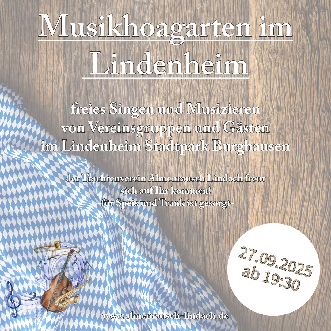 Der Trachtenverein Almenrausch-Lindach lädt herzlich zu einem besonderen musikalischen Abend ein: Am Samstag, den 27. September, findet im Lindenheim der beliebte Musikhoagarten statt. Beginn der Veranstaltung ist um 19:30 Uhr.